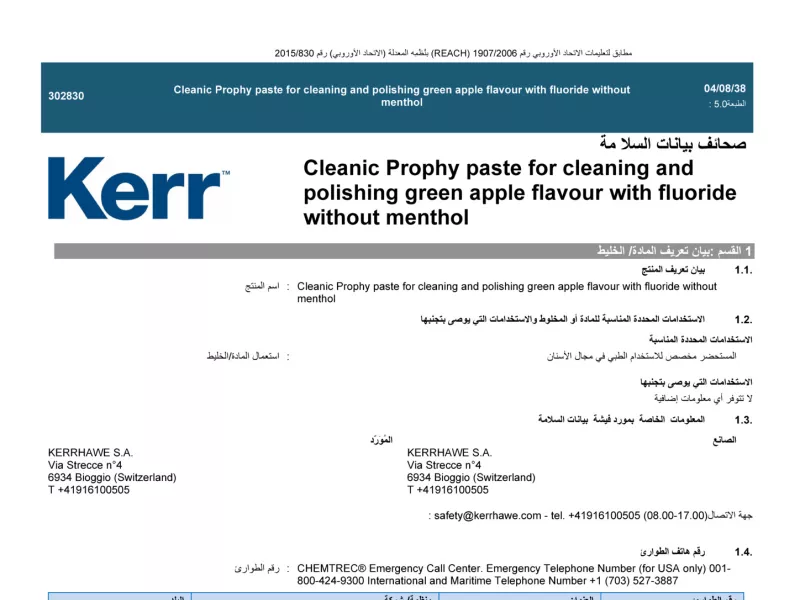 Cleanic prophy paste for cleaning and polishing mint flavour with fluoride - single dose SDS