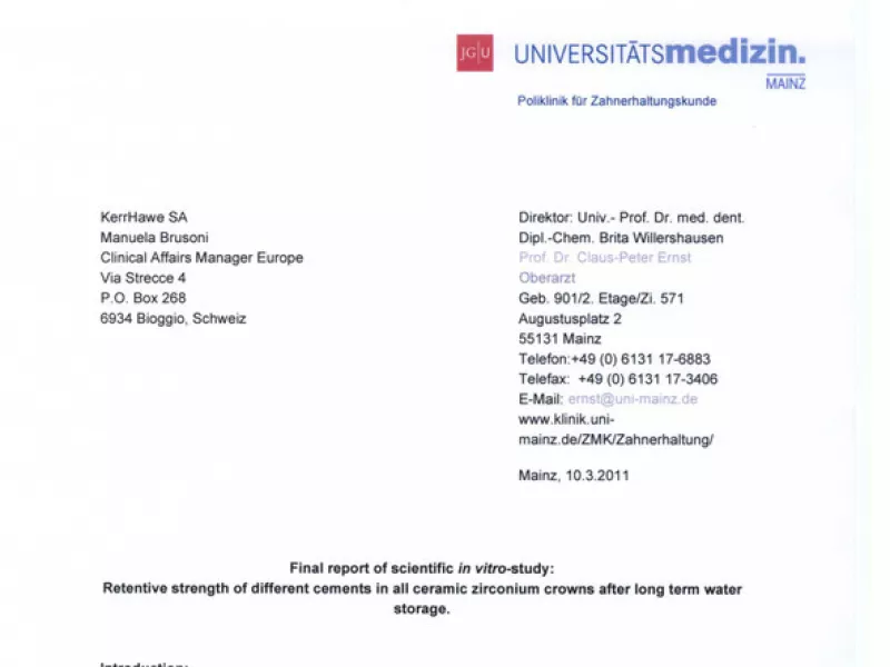 Maxcem Elite Retentive Strength Report - University of Mainz Germany