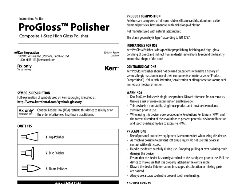 Instructions for Use (IFU) October 10, 2024 0.13 MB English (US) 504854e REV00 PROGLOSS POLISHER eIFU Download