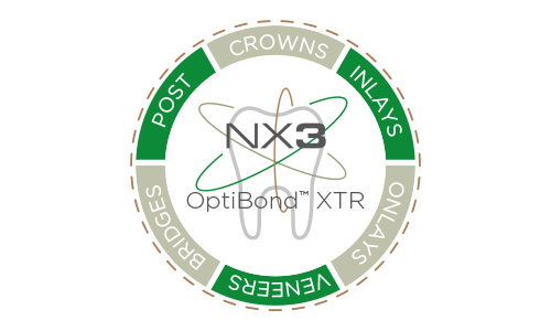 Wanneer ze samen worden gebruikt, combineren OptiBond™ XTR en NX3 de helderheid van één gestandaardiseerd proces voor al uw indirecte procedures, met uitstekende esthetische resultaten, zelfs bij totale dark-cure uitharding.