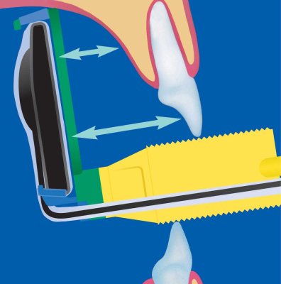 - Sabit apikal durdurucu/stop, apikal bölgenin komple görüntüsünü almak üzere sensör yönü veya boyutundan bağımsız olarak, sensörü tam yerine konumlandırır.